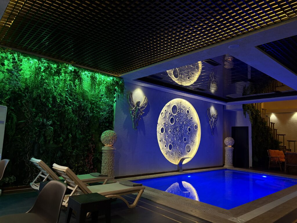 Gaziantep’in sıcak ikliminde serinlemek ve günün yorgunluğunu atmak için havuzumuzun berrak sularına davetlisiniz. Hijyenin ön planda tutulduğu, ferah ve modern tasarımlı havuzumuz, hem yüzmek hem de suyun rahatlatıcı etkisiyle dinlenmek için ideal bir ortam sunar. İster keyifli bir yüzme antrenmanı yapın, ister sadece suyun dinginliğinde stresinizden arının; havuzumuz, size özel bir kaçış noktası yaratır. Dinlenmenin ve tazelenmenin keyfini çıkarın.